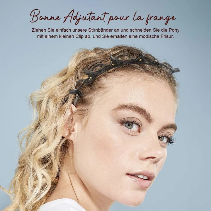 Put the headband on your head and leave a small amount of hair, clamp the hair with clips as needed.
